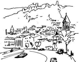 Продольные улицы секутся поперечными – налево от нас со склонов Мтацминда спускается прямая, как стрела ул. А. Чавчавадзе, она пересекает проспект Руставели и, выпола-живаясь, переходит в улицу Луначарского.