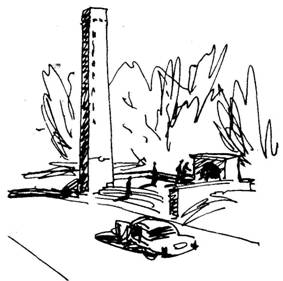Потом, ближе, видны уже заостренные кварталы Сабуртало, а левее Ваке. Их разделяет долина реки Верэ. Чтобы лучше рассмотреть район Ваке, надо пройти по боковой аллее параллельно главной аллее метров двести и выйти на площадку, откуда открывается вид на район Ваке. Военно-грузинская дорога и продолжающая ее улица Ленина проходит через площадь Героев. Здесь хорошо видны знакомые уже нам цилиндрическое здание цирка и башня одиннадцатиэтажного дома, а левее, там, где новая улица Варазисхеви сливается с проспектом И. Чавчавадзе, – белое здание главного корпуса Тбилисского государственного университета.