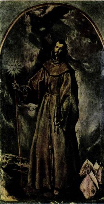 В музее госпиталя хранится одно из многих изображений св. Франциска, выполненных Греко в Толедо. Греко никогда не уставал воспроизводить образ святого из Ассизи, художника влекло к нему, как к святому, глубоко почитаемому на его родине. Но у Греко – это не святой, любящий цветы, животных и снисходительный к людским слабостям, это не образ, воплощающий идею кротости и любви, созданный в благотворной природе Италии. У Греко св. Франциск – фанатик, охваченный пламенем молитвенного экстаза, тоскующий по потустороннему миру, отрешенный от всего земного. Таковы же изображения св. Франциска Греко, находящиеся в других церквах и собраниях Толедо: св. Франциск с черепом в руке в Лас Донселас Ноблес, в музее Сан Висенте, в музее Греко, в вестиарии собора и в собрании Вега Инклан [8]