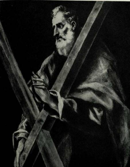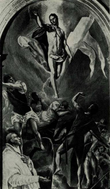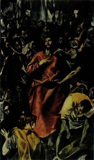 Образ святого в картине Греко «Св. Доминго де Гусман», находящейся в соборе Толедо, кроток и спокоен. На его красивом лице – печать тихого раздумья, окружающий его скалистый пейзаж с небом, покрытым тучами, полон динамизма. Более спиритуализирован у Греко образ св. Доминго де Гусман в картине музея Сан Висенте в Толедо. В сакристии собора висит произведение Греко «Раскаяние апостола Петра»-художник любил повторять эту тему. Помимо полотен собора в Толедо имеются еще две аналогичные картины Греко: одна – в собрании маркиза Вега Инклан, другая – в церкви госпиталя кардинала Таверы. Греко всегда наделяет апостола Петра мужественностью, граничащей с грубостью, как бы желая показать, что горе Петра, предавшего учителя, было настолько сильно, что даже его суровая и могучая натура не выдержала.