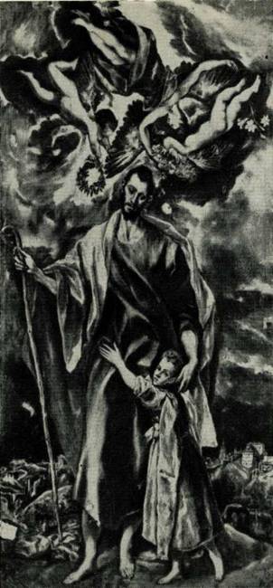 Из сохранившихся в капелле Сан Хосе картин поражает монументальностью образа картина Греко «Св. Иосиф с младенцем Христом». Фигура святого заполняет все пространство картины. Святой как бы движется навстречу зрителю, пройдя длинный путь от Египта до земли Израильской. Он ласково прикасается рукой к головке младенца, глядя на него задумчивым взглядом. Вверху – группа как бы подхваченных вихрем ангелов, внизу – мерцающий силуэт Толедо. Золотисто-желтоватый плащ Иосифа развевается от ветра, открывая зелено-голубоватую тунику, гармонирующую с зеленоватым тоном пейзажа. Необычайно жизненно написаны ноги и руки св. Иосифа.