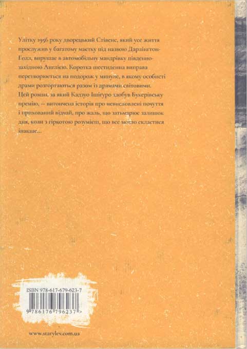 Минуло хвилин із двадцять, відколи той чоловік пішов, а я так і сидів на лавці: чекав на те, що тільки-но відбулося, чекати, доки засвітяться на набережній ліхтарі. Як я вже казав, радість, з якою юрба привітала цю скромну подію, підкреслює, наскільки слова мого сусіда правдиві: для багатьох людей вечір і справді – найкраща пора. То, може, його порада дійсно слушна: треба перестати весь час озиратися на минуле, а налаштуватися на оптимістичніший лад і старатися якнайліпше скористати із залишку свого дня. Адже що доброго ми здобудемо, коли повсякчас озиратимемося назад і звинувачуватимемо себе в тому, що життя склалося не зовсім так, як нам хотілося? Жорстока реальність у тому, що таким, як ми з вами, не залишається іншого вибору, аніж вручити свою долю в руки великих джентльменів, які перебувають у гущі світових подій і наймають нас собі на службу. Який сенс так сильно перейматися тим, що можна було вдіяти, аби скерувати своє життя в інше русло? Безперечно, досить і того, що такі люди, як ми з вами, принаймні намагаються зробити свій маленький внесок у щось велике й достойне. А якщо хтось із нас готовий пожертвувати задля цього своїм життям – це вже причина для гордості й утіхи, байдуже, чим це закінчиться.