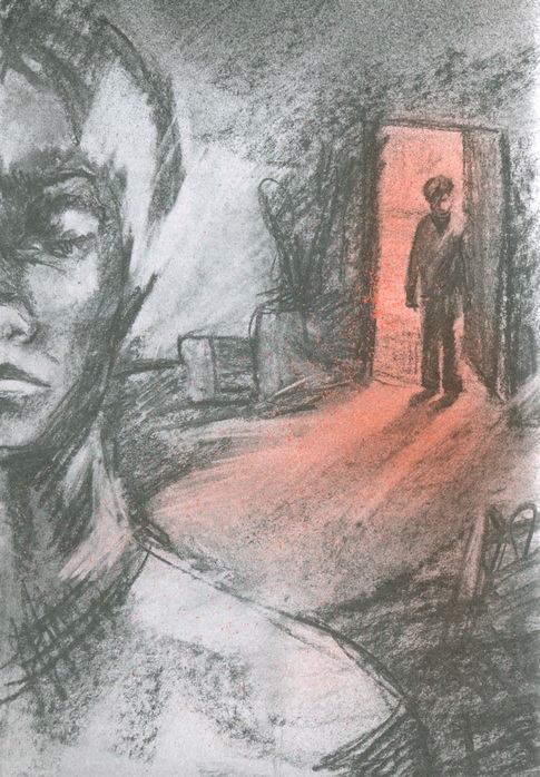 Вже майже наближаючись до кінця стосу, я зрозуміла, що хтось стоїть за порогом сараю. Я залишила двері відчиненими, тому що такими вони були зазвичай, але й для того, щоб впустити більше світла. Я вже двічі підводила очі, бо мені здавалось, що я почула якийсь шум. Але на порозі нікого не було, тож я продовжувала справу. І ось нарешті я перестала сумніватись у присутності когось, тож, опустивши журнал, я тяжко зітхнула, постаравшись, щоб мене було добре чутно.