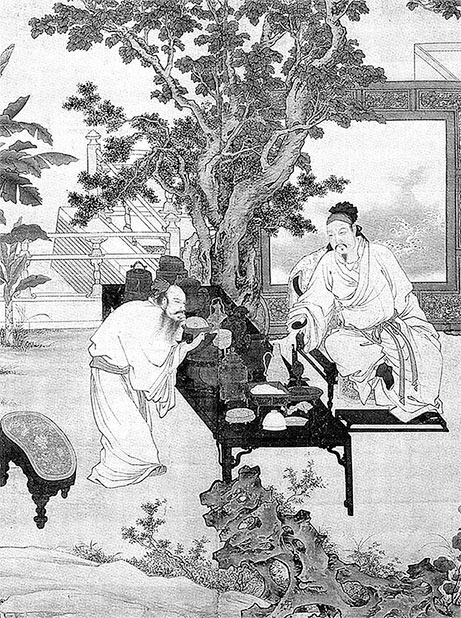 Для освобождения чая из плена примитивного употребления и возведения его в достойный идеал понадобился талант правителей китайской династии Тан. В лице Лу Юя [13] мы теперь знаем первого ревнителя чайного напитка середины XIII века. Он родился в эпоху, когда буддисты, даосы и конфуцианцы занимались поиском точек соприкосновения своих верований. Пантеистический символизм того времени состоял в отражении всеобщего через частное. Поэт Лу Юй видел в чайном обряде гармонию и порядок, воплощающийся во всех своих проявлениях. В прославленном трактате «Ча цзин» («Чайный канон») он и сформулировал этот чайный канон. Китайские торговцы чаем возвели этого поэта в ранг божества – покровителя чайного дела.