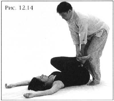 Согните ноги партнера, скрестив их в лодыжках, и положите ниже своих коленей (фото 12.14).