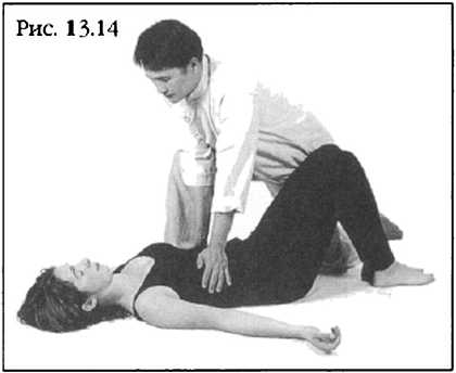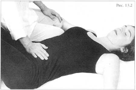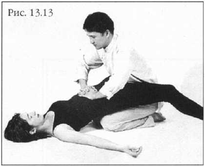 Позвольте его ногам свеситься у вас по бокам, ваши бедра поддерживают его поясницу. Теперь живот прямо перед вами и очень доступен для ваших рук (фото 13.11).