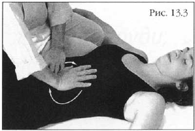 Переплетите пальцы, положите обе руки на живот ладонями вниз. Нажимайте то одной, то другой, подобно волнам в океане (фото 13.13).