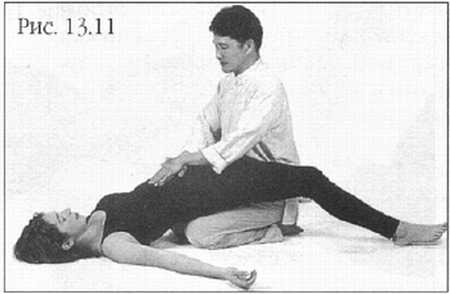 Продолжайте поднимать ноги, сами на коленях подходите ближе к принимающему процедуру, до тех пор пока не упретесь в нижнюю часть спины (фото 13.10).