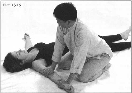 Сядя рядом с партнером в позиции Открытый Алмаз, отведите его руку в сторону на 90 градусов. Положите ладони на запястье и выше локтевого сгиба (фото 13.15).