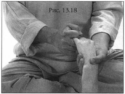 Начните этот замечательный массаж с запястья. Рука удобно лежит в ваших ладонях, массируйте запястье большими пальцами (фото 13.18).