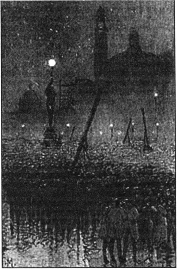 Со дня на день она становилась все больше и больше. В астрономические трубы уже ясно можно было различить в ней довольно яркое ядро, тотчас же сделавшееся предметом самых разнообразных предположений и споров. Затем хвост ее постепенно начал разделяться на несколько лучей, расходившихся от одного и того же ядра и принимавших вид веера. Волнение охватывало уже все умы, как вдруг после первой четверти луны и во время полнолуния комета как будто остановилась в своем движении и даже стала не столь яркой. Так как все ждали, что она должна быстро увеличиваться, то теперь появилась надежда, что, может быть, в вычисление вкралась какая-нибудь ошибка. Наступило временное затишье; все как будто немного успокоились. Вслед за полнолунием барометр вдруг значительно понизился. Со стороны Атлантического океана над Францией пронеслась сильная буря, причем центр циклона прошел несколько севернее Британских островов. В продолжение целых двенадцати дней небо оставалось закрытым облаками почти надо всей Европой.