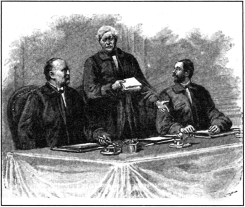 Заседание открылось в полном составе: председатель, его товарищи, непременные секретари… Имена ораторов и порядок их речей – записаны. Ученые мужи не были, однако, одеты в зеленые хламиды, как попугаи, на головах их не красовались нахлобученные уродливые шляпы, они не были вооружены допотопными шпагами; на них было простое общепринятое платье без всяких лент и орденов, потому что уже два с половиной века, как все подобные украшения вышли из употребления в Европе и оставались только в центральной Африке, где они достигли в это время самого роскошного развития.