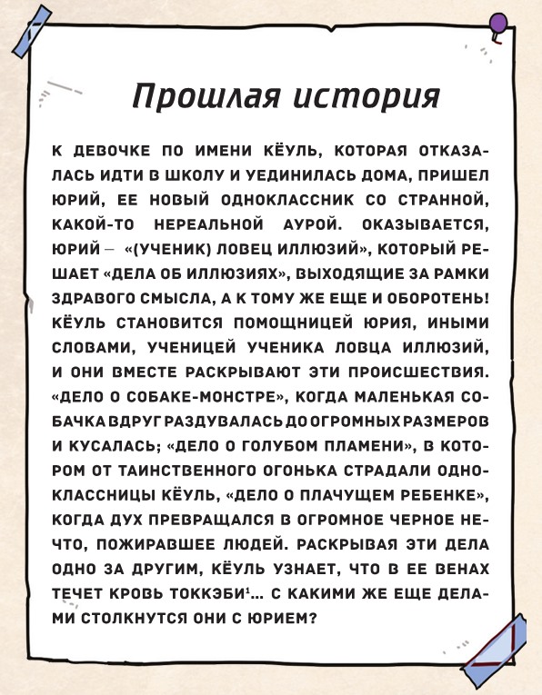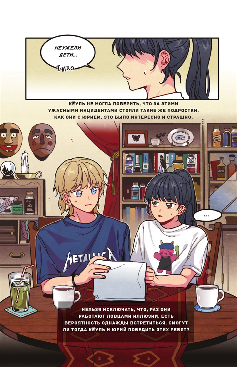 История о том, что у Юрия, приемного сына хозяина кафе «Лунный свет», появилась помощница, быстро разлетелась по миру ловцов иллюзий. Большинство из них посчитали это милой детской шалостью, но немало было и тех, кто так не думал. Дяденька Чону как раз был одним из них. Однажды он серьезно посоветовал Кёуль бросить опасную работу по разгадыванию дел об иллюзиях. Но девочка и ухом не повела.