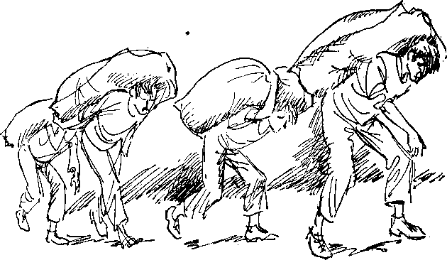 Наконец рабочий день кончился. Он сидел на мешках, вконец измученный, покрытый потом, совсем без сил. Народ расходился, а когда ушел последний грузчик, мальчик приблизился к боцману и смущенно, ничего не рассказывая о себе, попросил уплатить ему за работу, и если можно, то и вперед.