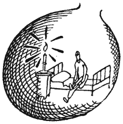 Он выбрался, чертыхаясь, из постели и стал шарить в потёмках, ища брюки, чтобы достать спички из кармана. Найдя коробок, он снова зажёг свечку.