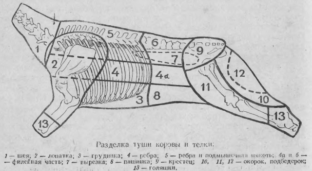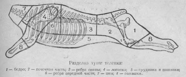 Каждая часть туши животного имеет в кулинарии определенное значение, поэтому производится следующая его разделка: