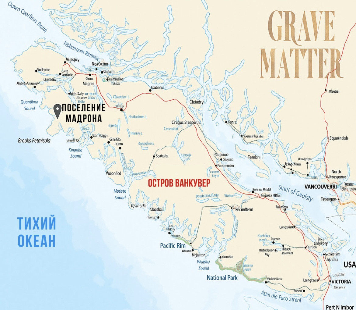 Я ожидала, что это место напомнит мне дом – я выросла в Кресент-Сити, Калифорния, так что туманы, океан и исполинские деревья мне не в новинку. Но здесь всё словно обрело грань, стало острее. Туман здесь более осязаемый, но при этом хрупкий, как паутина, недвижимая, а лишь протягивается меж верхушек деревьев. Сами деревья – дугласова пихта, западный красный кедр, ситхинская ель – не такие мощные, как секвойи, но выше, их ветви тяжелее, стволы густо поросли мхом и лишайником. Подлесок очень разросся, и глазам сложно охватить всё это буйство зелени – салал, магонию падуболистную, дикий имбирь, огромные мечевидные папоротники.