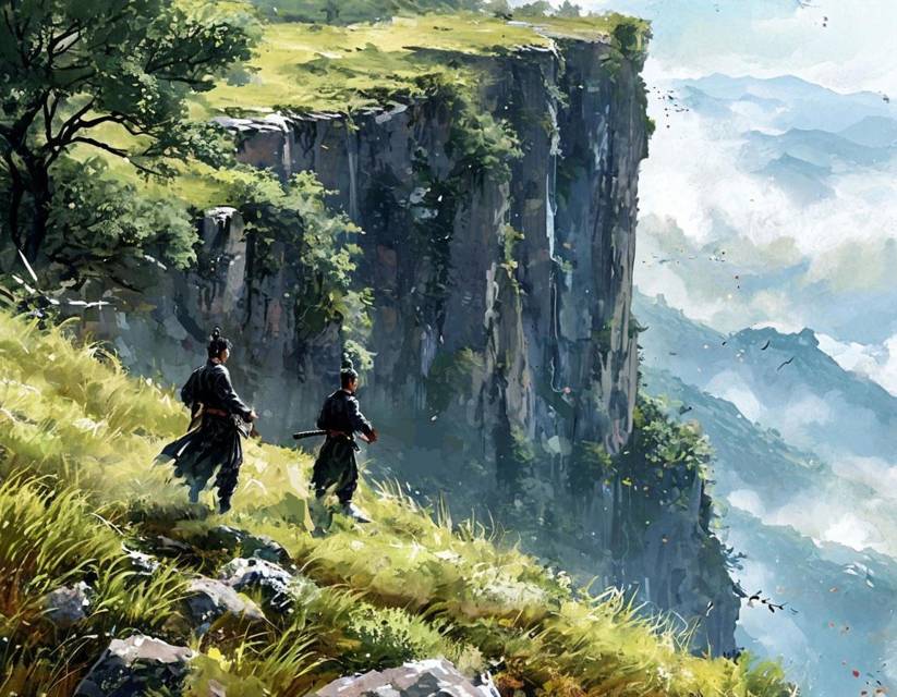 И шатание на тросе над пропастью, когда мелкие камушки летят вниз, одна нога скользит по траве, другая ступает на облако, а не на землю – воин постарше исполнил так, будто всю жизнь умел ходить по воздуху.