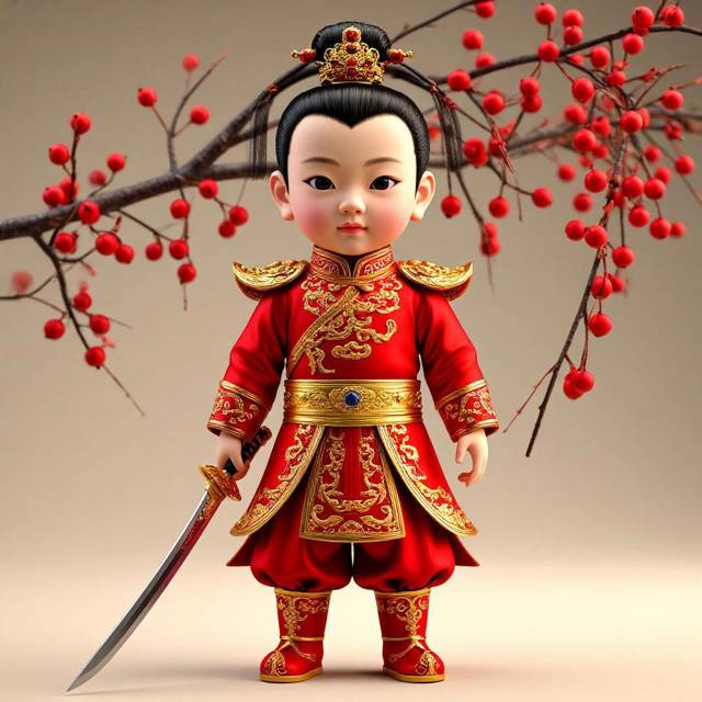 Рендеры показывали нам в порядке старшинства. Первым – наследный принц, он же (дальше по ходу действия) царь. Без меча, но с пионами. Растительные украшательства в тематике у каждого свои. В коробке с куклой они тоже будут. По крайней мере, нам так обещали.