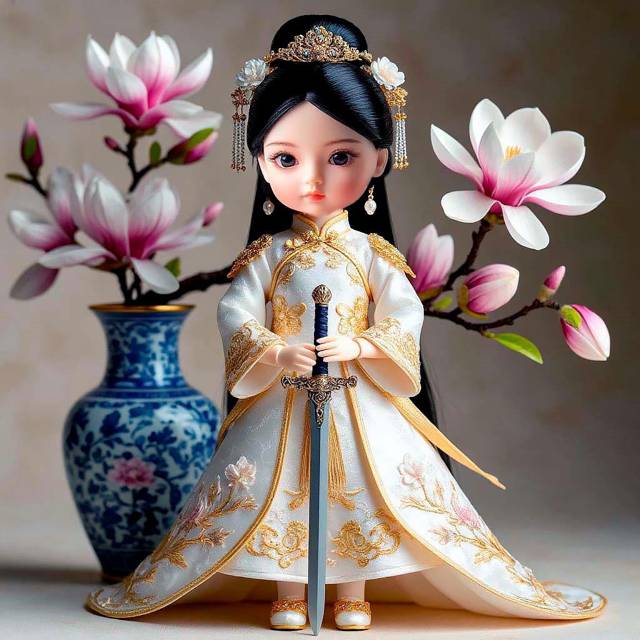 Личико, шитье, украшения, меч, даже магнолии в вазе – всё это на другом уровне. Магнолии и в вышивке, и в заколках – нежнятина головокружительная.