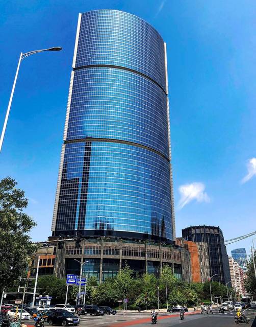 Нам несказанно повезло: в день поездки небо над деловым центром манило синевой. Кобальтовые оттенки отражались и в стеклопакетах центра Цзингуан, синели с указателей и номеров автомобилей.