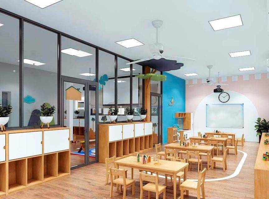 А дальше из нас делают «паровозики», которые шагают «чух-чух-чух» по классам. Классы не впритык друг к другу. Дальше по этажу игровая зона и спальня. Все перемещения осуществляются под надзором взрослых.