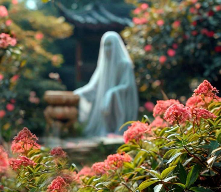 Впервые малышка видит призрака в день приезда, и он почти сразу же уходит, растворяется в зарослях роз и иных кустарников.