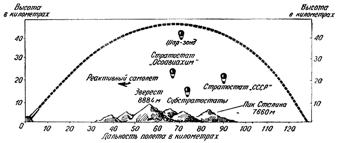 Но и 100 километров – это совсем не предел, достигнутый современной реактивной техникой, как не предел и достигнутая скорость полета в 1,5 километра в секунду. Использование идей Циолковского позволило добиться уже значительно больших успехов в том замечательном штурме мирового пространства, который ведет реактивная техника.
