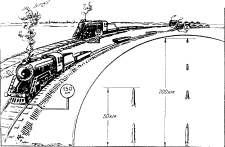 После остановки двигателя ракета продолжает полет за счет накопленной ранее скорости, как снаряд, вылетевший из ствола артиллерийского орудия. Правда, такую пушку в данном случае надо было бы поместить на высоте 40 километров. Летя таким образом, ракета забирается еще выше и достигает максимальной высоты – примерно 100 километров.