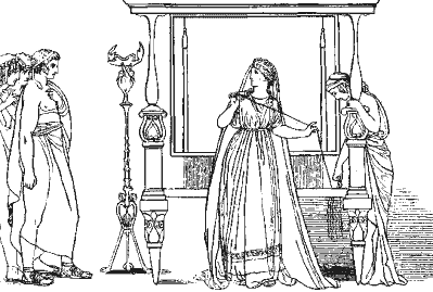Отечеством Одиссея был остров Итака, как было сказано выше, находящийся к западу от Акарнании. Здесь, как и у феаков, было несколько родовых вождей, но главою их всех был Одиссей. Так как он уже почти двадцать лет был в отсутствии, на острове воцарился величайший беспорядок, и вожди, в особенности молодые, неистовствовали с наглой дерзостью. Мать Одиссея умерла с горя, а престарелый отец Лаэрт жил вдали от города, возделывая свой виноградник. Благородная супруга Одиссея Пенелопа проводила жизнь в слезах, оплакивая отсутствующего супруга и расхищение своего богатого дома. Она была прекрасна, богата, умна и благонравна, и все это побуждало многих искать ее руки, так как никто уже не верил в возможность возвращения Одиссея. Женихи требовали, чтобы благородная женщина вернулась к своему отцу и вышла замуж за того, кого сама выберет, остальные же уступят. Но Пенелопа продолжала хранить в своем сердце образ благородного Одиссея и отвергала вступление во второй брак. Этим она еще больше раздражала заносчивых искателей ее руки.