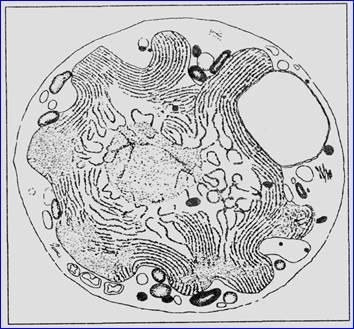 В природе есть много других примеров этого вида эволюционного развития. Возьмем наудачу лишь один из них – рассмотрим, почему растение зеленое. В процессе фотосинтеза растения используют энергию красной и фиолетовой частей спектра солнечного света и с ее помощью разлагают воду, образуя углеводороды и удовлетворяя другие свои нужды. Но Солнце посылает значительно больше света в желтой и зеленой частях спектра, нежели в красной или фиолетовой. Растения, обладающие всего лишь одним фотосинтезирующим пигментом хлорофиллом, не используют самую насыщенную часть солнечного спектра. Многие растения с опозданием «заметили» этот факт и осуществили соответствующее изменение: в них развились другие пигменты (например, каротиноиды и фикобилины), которые отражают красный свет и поглощают желтый и зеленый. Прекрасно. Но отказались ли эти растения от хлорофилла? Нет, не отказались. На рис. 9 изображена фотосинтезирующая фабрика красной водоросли. Ее волокна содержат хлорофилл, а маленькие шарики, прикрепленные к этим волокнам, содержат фикобилин, который, собственно, и делает красную водоросль красной. Эти растения по-прежнему передают энергию, полученную ими от зеленой и желтой части солнечного спектра, хлорофиллу, который, как и раньше, служит посредником между светом и химическими реакциями в процессе фотосинтеза, хотя энергия света была первоначально поглощена не им. Природа не может выбросить хлорофилл и заменить его другим, лучшим пигментом, поскольку хлорофилл слишком глубоко вплетен в ткань жизни. Растения, имеющие дополнительные пигменты, безусловно, отличаются от других. Они более эффективны, но и в них в самом центре процесса фотосинтеза продолжает трудиться хлорофилл, пусть и с меньшей ответственностью, чем раньше. Я думаю, что эволюция мозга протекала аналогичным образом. Глубинные, древние образования все еще остаются в строю.