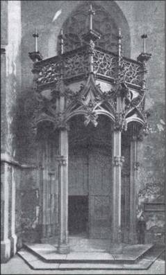 Во Франконии, например, городская церковь в Швабах – простая церковь зальной системы, поддерживаемая круглыми столбами с темным сильно повышенным средним нефом, – новая постройка XV в. Из более древних церквей Нюрнберга церковь св. Зебальда только теперь достроила свои башенные шпицы, а церковь св. Лаврентия благодаря трудам Конрада Роритцера и его сына Матвея получила свой прекрасный зальный хор по образцу Гмюнде. В нем над венцом часовен, имеющих вид плоских ниш между вдвинутыми внутрь контрфорсами, помещается богато украшенная галерея эмпоров.