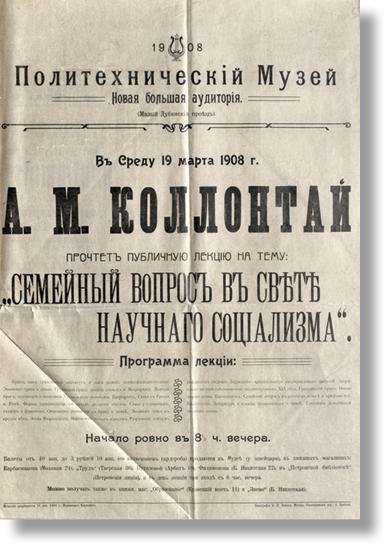 Афиши, объявления о выступлении А. М. Коллонтай с докладами и лекциями. 19 марта 1908 – 28 октября 1915. На русском, шведском и немецком языках. [РГАСПИ. Ф. 134. Оп. 1. Д. 30. Л. 5, 10, 12, 30]