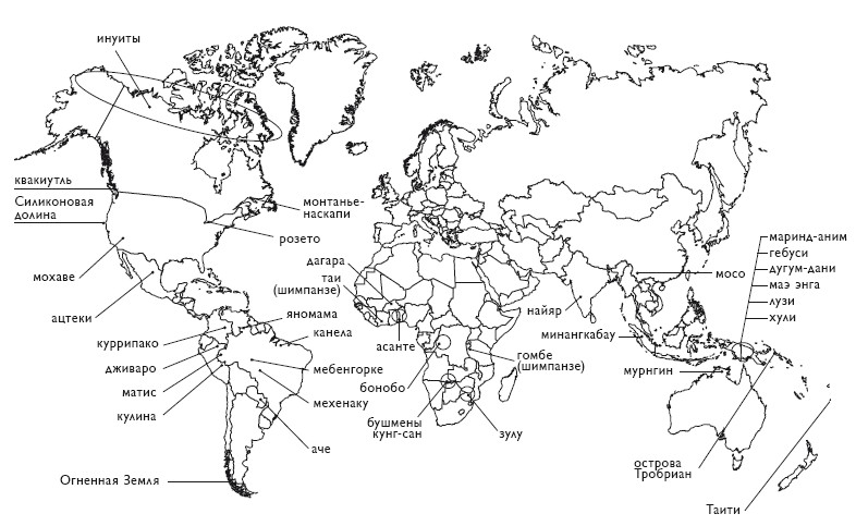 Общественной жизни собирателей присущи настолько глубокие и активные взаимоотношения, что даже трудно себе их представить (не говоря уже о том, чтобы вытерпеть). Нам, рождённым и выросшим в обществе, где всё построено на принципах индивидуальности, личного пространства и частной собственности, трудно спроецировать воображение в такую историческую даль, где группы сотканы воедино тесными связями, где почти всё пространство и собственность коммунальны, где самосознание, скорее, коллективно, нежели индивидуально. С рождения и до смерти жизнь собирателя представляет собой глубокие, постоянные взаимные связи, общение и взаимозависимость.