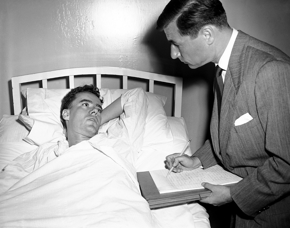 Митчелл Коэн допрашивает Говарда Унру в больнице, 7 сентября 1949 года