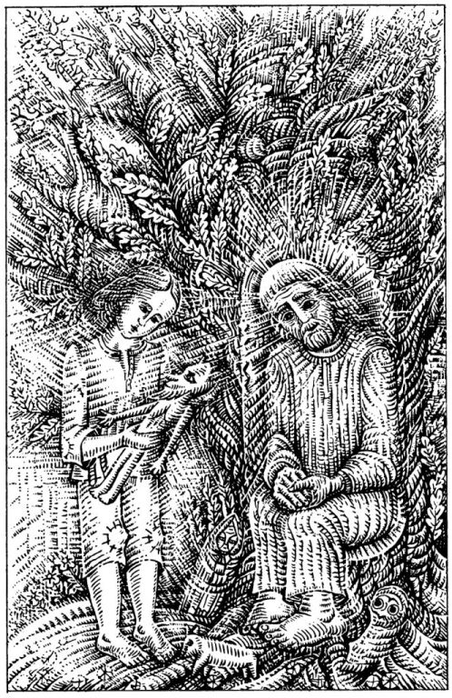 К счастью, через некоторое время таинственный дедушка вернулся. Отдохнув с дороги, он побрился и снова стал дядей Миколасом. Вытащил из котомки какое-то диковинное корневище, корявое, шишковатое, и говорит:
