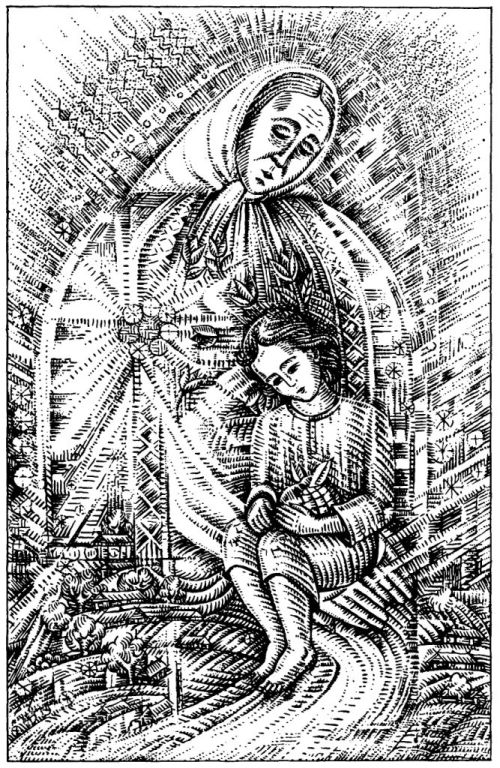 Миколас снова набивает трубку, затягивается, а я тем временем поглядываю исподтишка в полутемный угол, где висит, странно скособочившись, тулуп мастера. В какой-то миг мне почудилось, будто кто-то черный шмыгнул в рукав и теперь оттуда высовывается что-то – то ли шерсти клочок, то ли кончик хвоста. Ни слова не говоря, я выбираюсь из-за стола и прижимаюсь к облепленному стружкой рукаву Миколаса. Когда страх понемногу отпускает меня, я снова вполголоса задаю вопрос:
