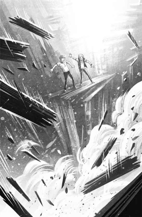 Закричал Мэтт, стараясь переорать шум. Он повернулся, чтобы вернуться туда, откуда пришел, и в этот момент пол провалился в пустоту. Вся полоса исчезла, вплоть до стены, поглотив их путь к отступлению. Мэтт повернулся, чтобы уйти в другую сторону, но пол уже исчез.
