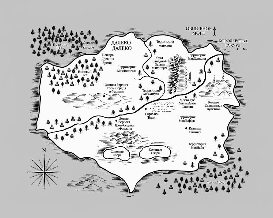 У волков вообще было на удивление много слов – слов стаи, слов клана, – о чем Фаолан узнал довольно поздно, потому что долго жил одиночкой, сам по себе. Он родился со слегка искривленной лапой, отчего стал считаться малькадом, про́клятым щенком. Согласно строгим законам волков, обитающих в стране Далеко-Далеко, особые волчицы-обеи оставляют малькадов на верную гибель, относя их в такие места, где они становятся легкой добычей хищников; члены стаи изгоняют родителей малькада из клана и запрещают впредь спариваться между собой. Так сохраняется чистота крови. В очень редких случаях малькад выживает, и тогда ему дозволяется вернуться в клан, но только в роли глодателя, занимающего самое низкое положение в стае…