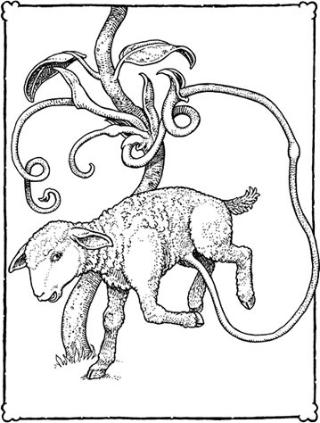 Баранец, известный также как живорастущий ягненок, растет на стебле, с которым соединен пуповиной. Он достигает одного фута[1]1