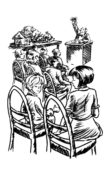 Если вы еще не знаете, я объясню, что такое аукцион. На аукционах продают старые вещи: картины, стулья, автомобили, книги и всякую всячину. Но это не магазин. Ты не можешь прийти туда и сказать: «Заверните мне эту картину!» На аукционе продается сразу много вещей, и приходят туда сразу много покупателей. Они рассаживаются на стульях, и каждому выдают карточку с номером. Приносят вещь. Аукционист, то есть человек, который командует аукционом, громко говорит, сколько стоит вещь. Тот, кто даст за вещь больше всех, ее и получает.