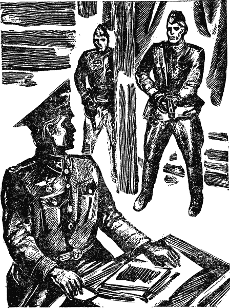 Распахнулась плащ-палатка, в землянку вошел в сопровождении Шульгина высокий солдат в немецкой форме. Он был без оружия. Видимо, автомат, висевший на стене землянки, принадлежал ему. Солдат удивленно посмотрел на своего комбата что-то пишущего, и недоуменный взгляд его остановился на Ярцеве, державшем его под дулом своего автомата.