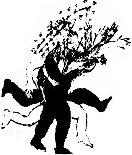 Вдруг на сцене перед больным вырастает громадная фигура санитарки. Лицо ее занесено вверх так, что его не видно. Виден только белый акулий подбородок. Большое торпедное тело с грудями дыбом и обширным задом. Санитарка немедленно вышвыривает собаку вон и, водворив больного на стул, всаживает ему укол. Тряхнув акульим подбородком, удаляется. За кулисами вой собаки. Лицо сумасшедшего искажено… На нем невыносимая боль, тоска и горечь…
