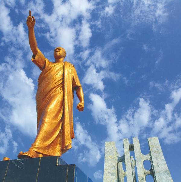 Памятник Кваме Нкруме в столице Ганы. Рука президента указывает направление независимости