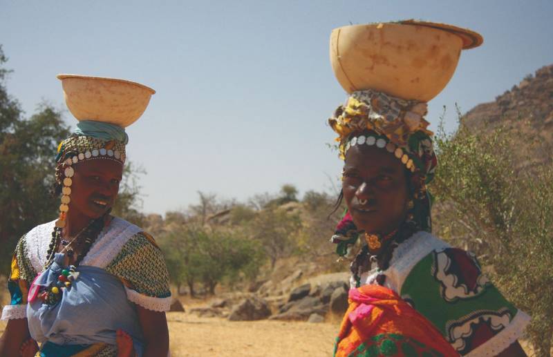 Женщины народа фульбе несут на голове выручку с рынка, а за спиной – собственных детей
