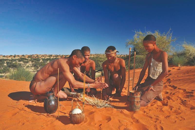 Удивительно то, что генетический состав групп койсанцев между собой столь же сильно различается, как и при сравнении его с генами других народов Африки. Аналогично и койсанские языки не дают возможности говорить об их близком родстве – вполне вероятно, что их предки разошлись по южной части континента 20 или 30 тыс. лет назад. Установить родственные связи на таком глубоком уровне невероятно сложно: скорость языковых изменений такова, что за 18–20 тыс. лет язык обновляет свой словарь практически полностью. Бесспорно одно: если сегодня область распространения языков бушменов и готтентотов ограничена саваннами юго-запада Африки и пустыней Калахари, а численность не превышает 350 тыс. человек, то ещё тысячу лет назад они доминировали повсюду к югу от экватора. На это указывают и следы древней культуры койсанцев, такие как наскальные рисунки, обнаруживаемые в разных районах Африки, так и найденные учёными несколько небольших языков на востоке континента, содержащих характерные для койсанцев особенности. В частности, к койсанским относят языки хадза и сандаве в современной Танзании, на них говорят в совокупности лишь несколько сотен человек (носителей сандаве осталось не больше пятидесяти), однако некоторые слова и грамматические элементы в них вполне сравнимы с койсанскими языками Юга Африки. Кроме того, и хадза, и сандаве так же как и языки бушменов, содержат знаменитые «щёлкающие» согласные, самую главную отличительную характеристику койсанских языков.