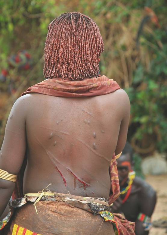 Физическое насилие в отношении женщин остаётся чрезвычайно распространённым. У скотоводов Судана принято поколачивать женщину по вечерам, приходя домой: считается, что это должным образом воспитывает молодую хозяйку, способствует появлению у неё чувства ответственности и разума, которые иначе как побоями ведь никак не вызовешь. Существует в Судане и интересный обычай ритуального бичевания жён. Это праздничная церемония, её практикуют во время торжеств инициации, свадьбы или похорон. Муж должен отстегать свою жену по спине и животу так, чтобы выступила кровь. Рубец затем наполняют растительной смесью с золой, чтобы он превратился в незаживающий, выпуклый шрам – такие сегодня можно видеть на спине почти каждой женщины в регионе. В дополнение к декоративному шрамированию, о котором мы ещё расскажем ниже, эти следы семейной жизни буквально не оставляют на теле женщины живого места.