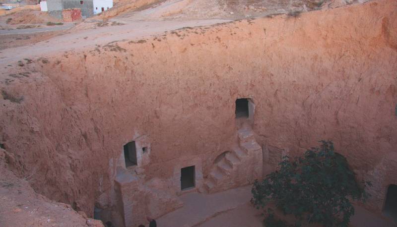 Здесь же, в Тунисе, а также в соседней Ливии можно увидеть последних из легендарных троглодитов (от греч. trōglē «пещера») – людей, строящих свои дома под землёй. Жаркий климат и знойные ветры Сахары, нашествия воинственных арабских бедуинов в Средние века вынудили издревле живущие здесь племена берберов освоить уникальную строительную технику. В твёрдой земле делают круглую яму глубиной 4–5 и диаметром 8–15 м, со дна которой в разные стороны отходят комнаты-землянки – иногда их число доходит до десяти, включая и кухни, и спальни, и кладовые с красивыми сводчатыми потолками. В центре подземного семейного двора вырывают колодец. Такой дом удобен: он спасает от жары и холода, его не поджечь и не разрушить. Многие из подземных квартир сегодня уже необитаемы или превращены в отели для падких на экзотику туристов, но в некоторых ямах берберские семьи продолжают жить и даже проводят туда электричество. По всей вероятности, именно берберы Северной Африки послужили источником туманных древнегреческих сведений о троглодитах, которые много веков спустя оформились даже в научную теорию Карла Линнея, который выделял особый вид человека Homotroglodites, поросшего шерстью и говорящего нечленораздельно. Сегодняшние троглодиты Туниса этой теории ничуть не соответствуют. Впрочем, известно, что жизнь под землёй провоцирует развитие лёгочных и глазных болезней, от которых нередко страдают жители подземных домов.