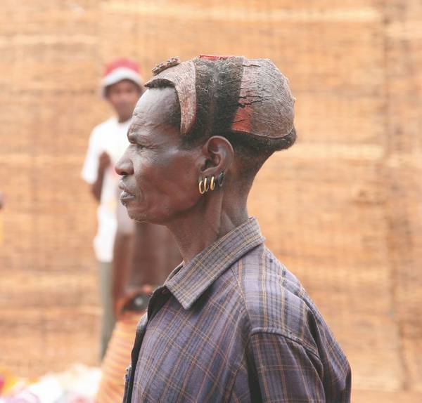 Ещё один из самых болезненных обычаев Африки – деформация формы головы женщины. Это происходит при помощи различных ухищрений, сводящихся к ограничению развития черепной коробки девочки. Для народа мангбету в Центральной Африке основной критерий красоты женщины – длина ее головы. Чем длиннее, тем лучше. Чтобы добиться идеальной внешности, сразу после рождения голову девочки туго обматывают бинтами. Удлинённая форма черепа достигается путём перетягивания специальной повязкой черепной коробки по окружности, по сторонам прикладываются дощечки для усиления эффекта, что приводит к утолщению лобной части головы с последующим вытягиванием затылочной области. Получившуюся конструкцию называют «башенная голова». Взрослые девушки для того, чтобы усилить впечатление башни, носили прически в виде цилиндров. Считалось, что это поможет привлечь мужское внимание и защитить девушку от колдовства. Удлинить череп и подчеркнуть высокий лоб – гордость женщины, соглашаются фульбе в Западной Африке, но они делают это менее радикальными методами: девушки просто удаляют себе ресницы и брови.