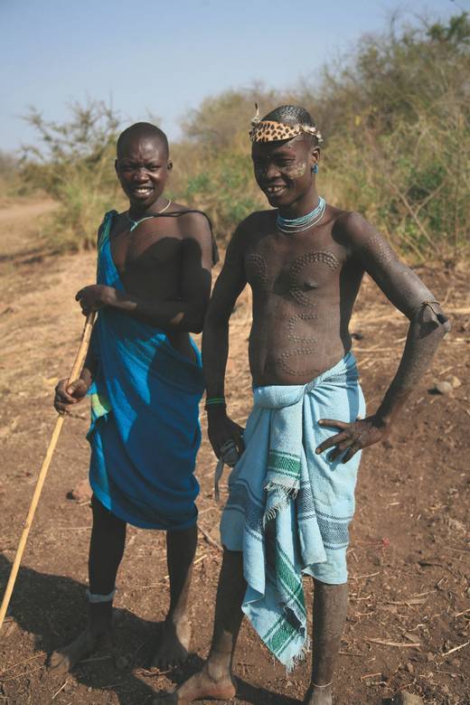 Богатый узор из шрамов на теле юношей мурси, Эфиопия